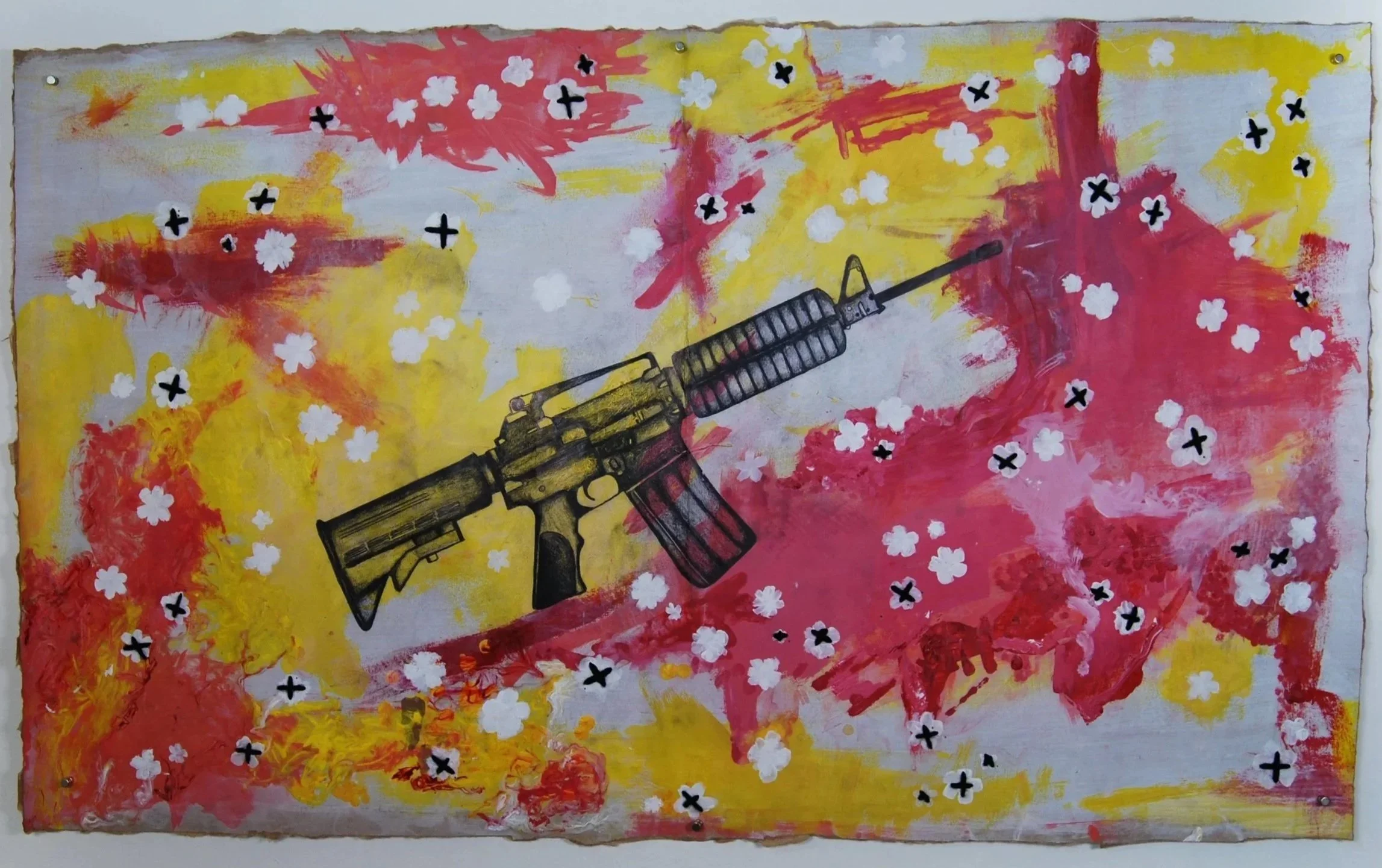 Explores a child’s inability to protect oneself. As though a flower was to be threatened by a gun.
